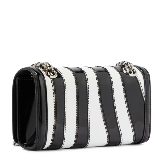 Dolce&Gabbana’s 3.5 clutch gets a revamp this season with a new zebra-inspired iteration. Made from patchworked patent black and white leather, the compact style comes with silver-tone hardware and a chain shoulder strap.