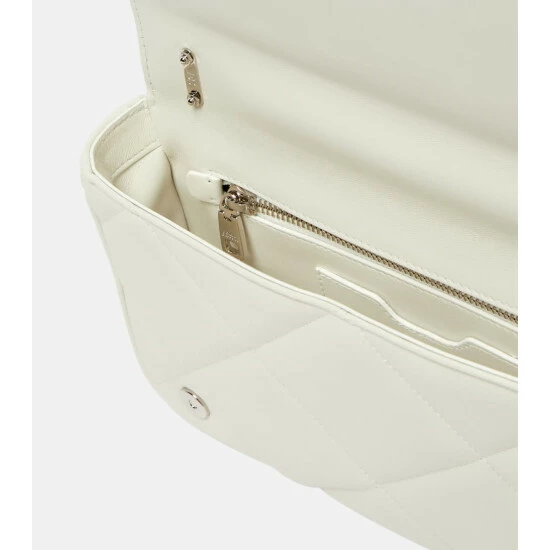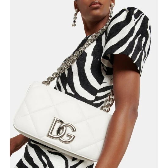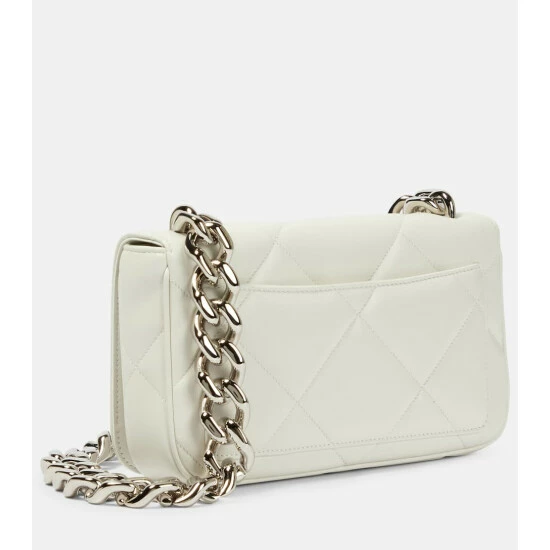 Dolce & Gabbana’s 3.5 bag family receives a charming addition with this crossbody bag. It’s made from white quilted leather with a silver monogram and curb-chain hardware.
