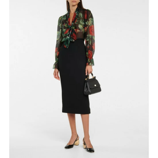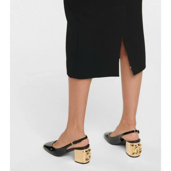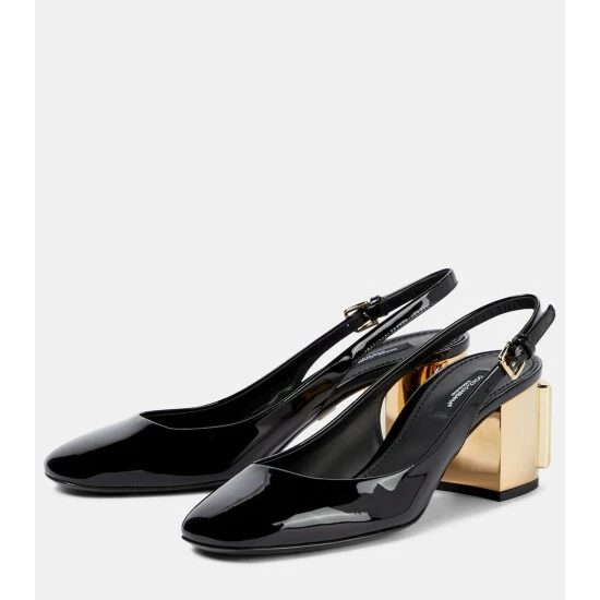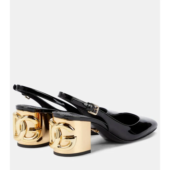 Dolce & Gabbana reinterprets the decadence of the ’90s with these black patent Alexa pumps. Made in Italy from glossy leather, they have buckled slingback straps and sit atop the house’s new DG Karol heels with maximalist 3D monograms.