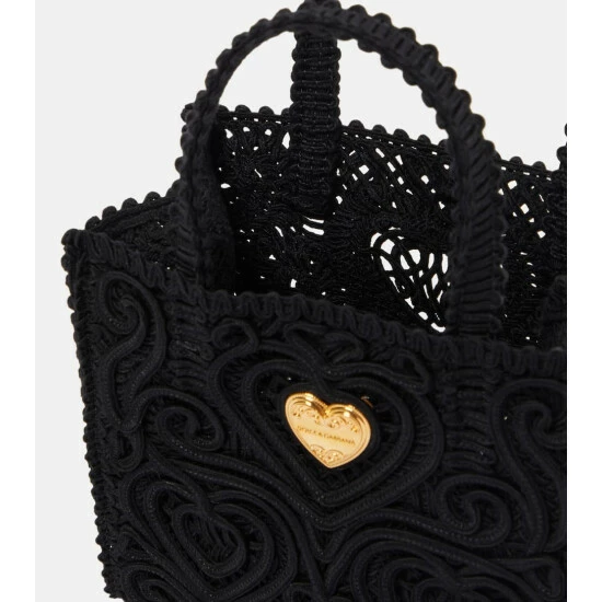 Dive into Dolce&Gabbana’s world of romanticism with the Beatrice tote bag. Made from hand-woven black lace with heart-shaped designs, this piece is a must-have for lovers of texture and fine details.