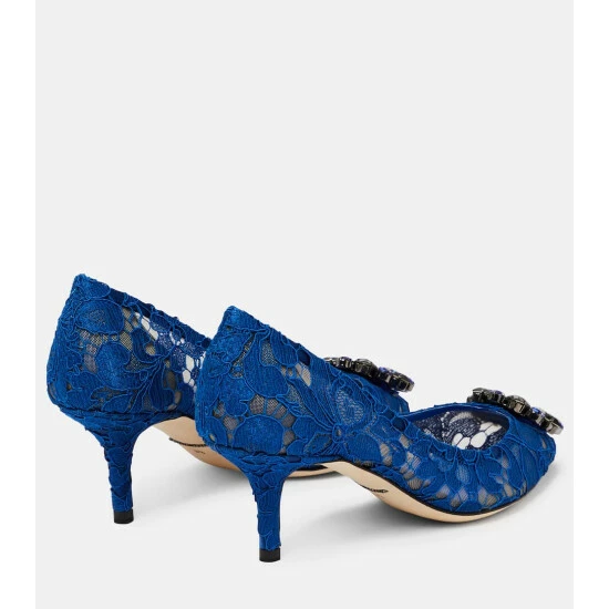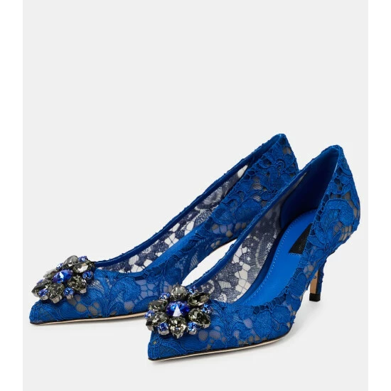 Special events call for the Bellucci pumps from Dolce & Gabbana. Covered with blue floral Taormina lace, this point-toe pair has ornately embellished brooches that will add a dose of glamour to every step you take.