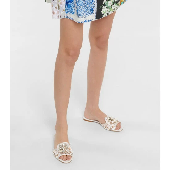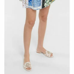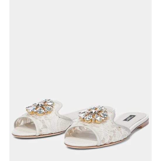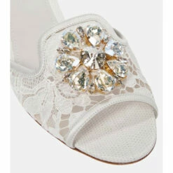 Pad around the house with an air of opulence while wearing the white Bianca sandals from Dolce & Gabbana. Made from Taormina lace, this pair is defined by sparkling crystal embellishments. Style with a feather-trimmed house coat to add a dose of drama to your evenings.