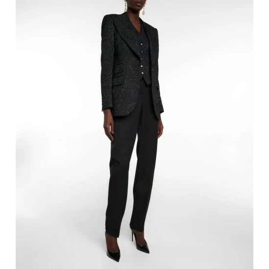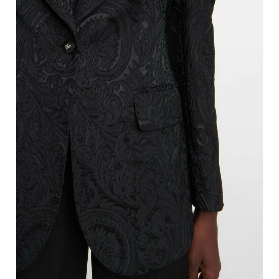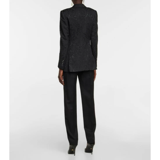 Featuring tonal brocade patterning, this blazer from Dolce & Gabbana has wide lapels, a buttoned front and a leopard-printed lining.