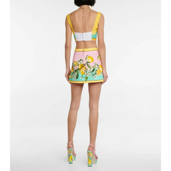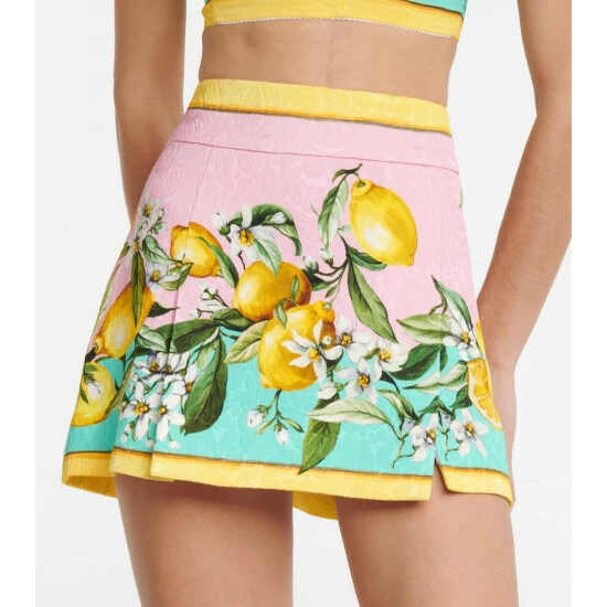 This miniskirt from Dolce&Gabbana’s The Exclusive Lemon Collection for Mytheresa showcases the characteristic lemon print. Cut from brocade into an A-line silhouette, it has two front splits.