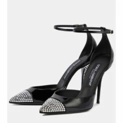 The Cardinale pumps from Dolce & Gabbana are dotted with shimmering crystals along the toes and heels for a point of difference. They’re made from shiny patent leather, and secure with ever-so-slender ankle straps.