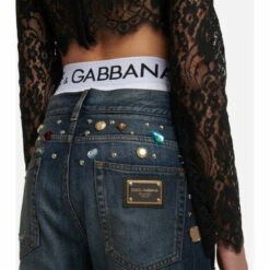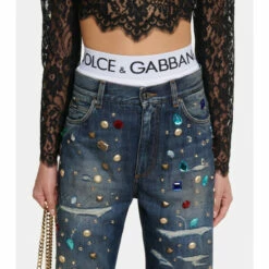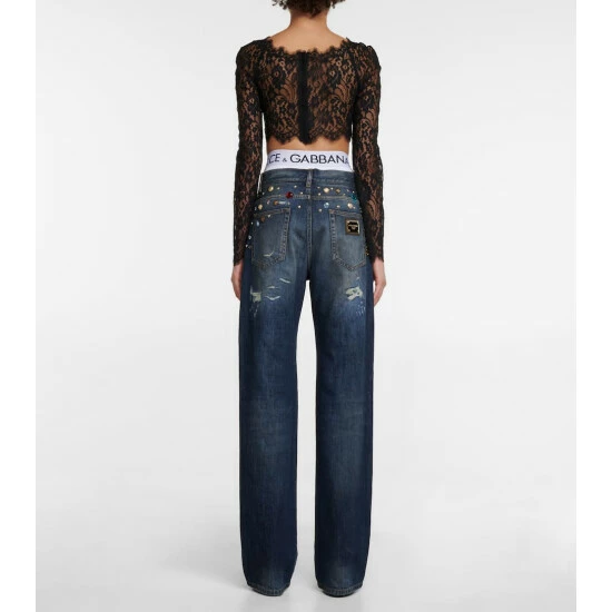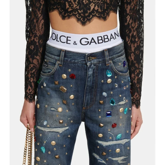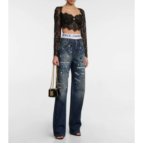 Dolce & Gabbana brings high-octane opulence to your everyday edit with these denim jeans. They have a high-rise, wide-leg silhouette, and are elevated with crystal embellishments and light distressing.