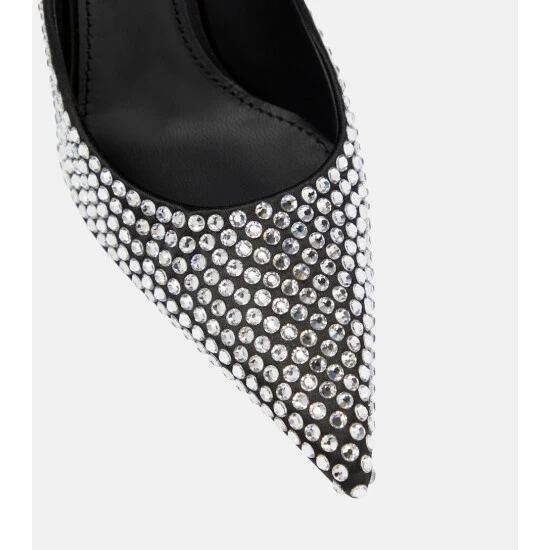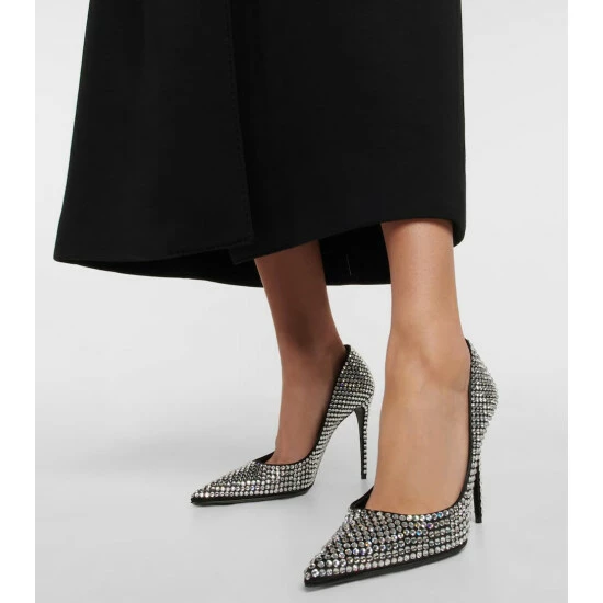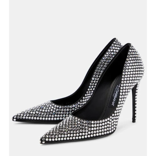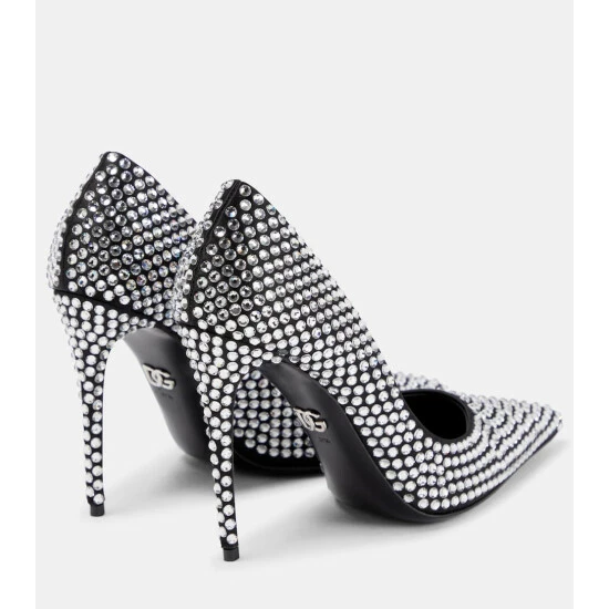 For a high-octane finish to your evening look, opt for these pumps from Dolce&Gabbana. Made from black satin, the classic stiletto design is covered in dazzling rhinestones – perfect for special occasions.