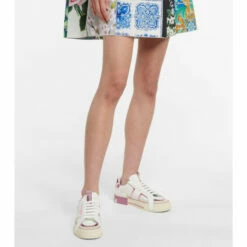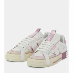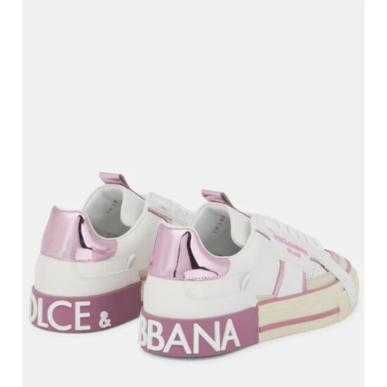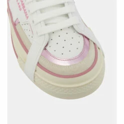 Dolce & Gabbana’s signature silhouette receives a utilitarian overhaul with these white sneakers. Made in Italy from smooth calf leather, they’re reinforced with logo-debossed rubber panels, accented with pink loops at the sides, and set on off-white soles for a vintage-inspired finish.