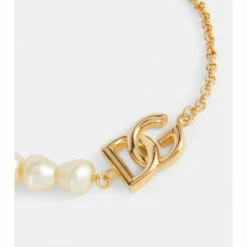 This bracelet from Dolce&Gabbana is adorned with a large DG logo and a string of imitation pearls. Made from gold-tone brass this design has two types of chainlinks and fastens with a lobster clasp.