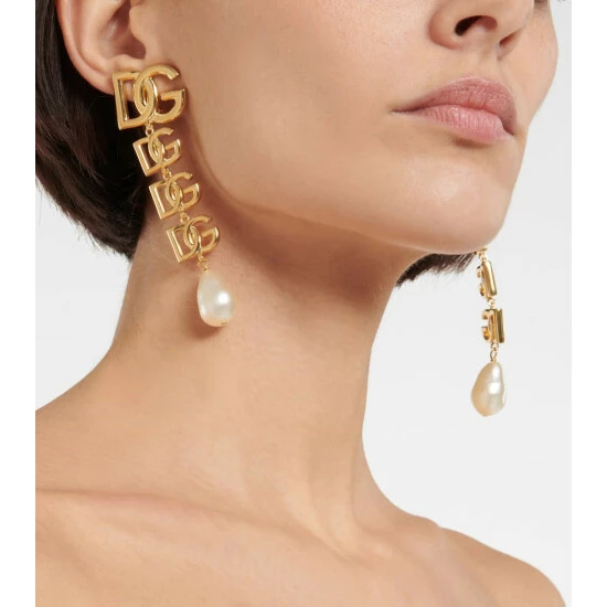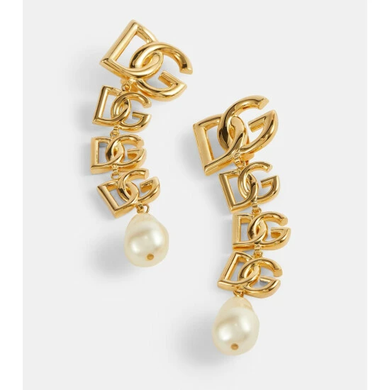 Dolce&Gabbana’s instantly recognizable DG monogram takes center stage for these dramatic earrings. Detailed with large faux pearl drops, this layered style is suitable for all lobes with versatile clip fastenings.