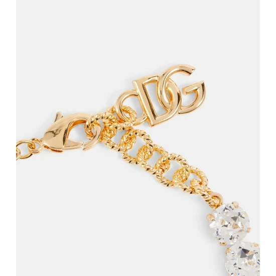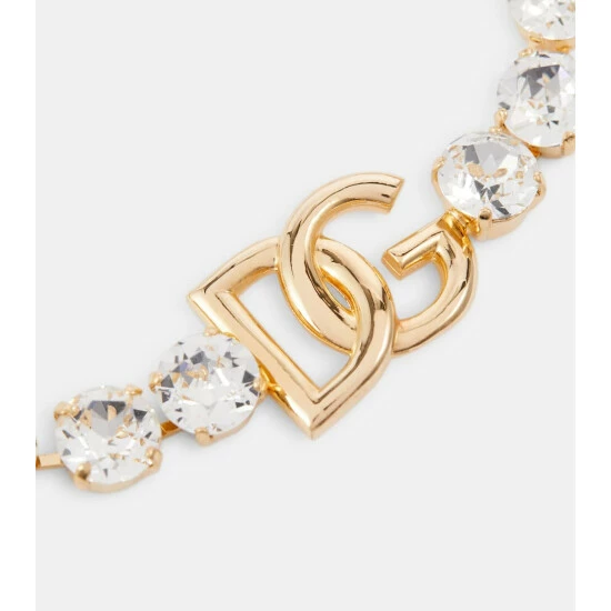 This necklace from Dolce & Gabbana is detailed with the fashion house’s interlocking monogram – leaving no doubt as to its origins. Made from gleaming golden brass, it’s embellished with white crystals.