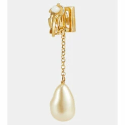Dolce&Gabbana’s ornate vision for modern Italian design is spotlighted by these earrings. Falling from polished DG studs, this style is characterized by oversized faux baroque pearls and secures with clip-on fastenings.