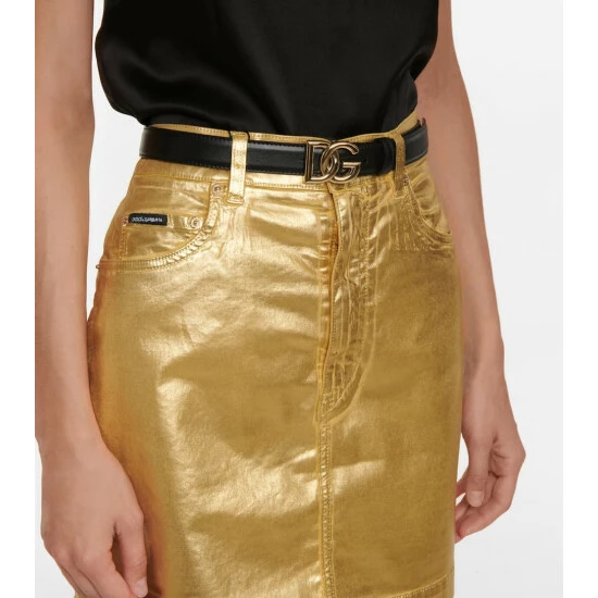 Made in Italy from smooth black calf leather, this belt from Dolce & Gabbana has a slender silhouette – perfect for tailoring – and fastens via a golden DG buckle.