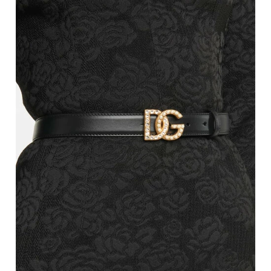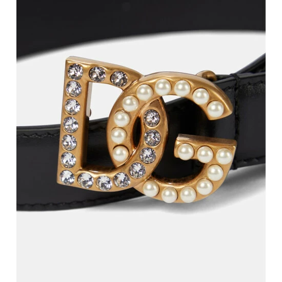Made in Italy from smooth calf leather in black, this belt fastens via Dolce & Gabbana’s signature gold-tone metal DG logo buckle, which in this version is embellished with pearls.