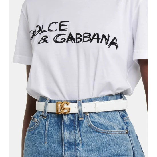 Made in Italy from smooth calf leather, this belt from Dolce & Gabbana has a slender silhouette that’s perfect for tailoring and fastens via a metal DG buckle.