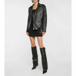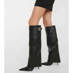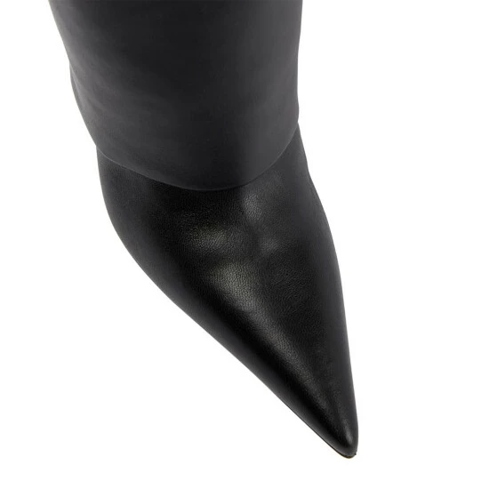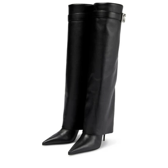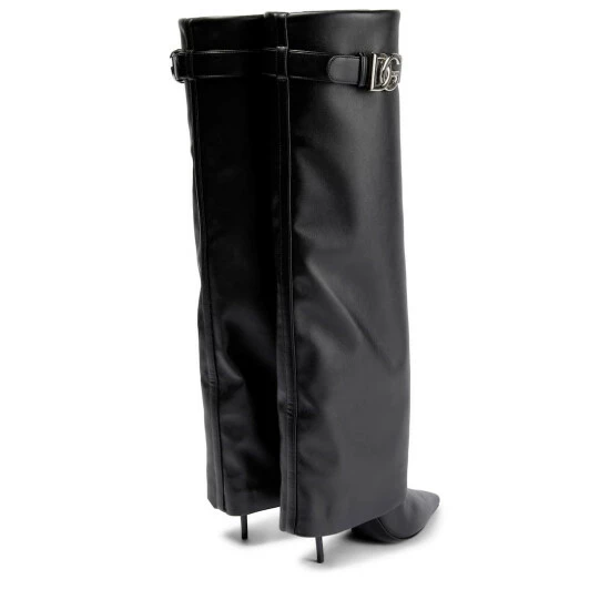 Make a bold statement with these knee-high boots from Dolce&Gabbana. Made from supple nappa leather, the contemporary design features sharp pointed toes, slender stiletto heels, and fold-over shafts accented with palladium-plated logo hardware.