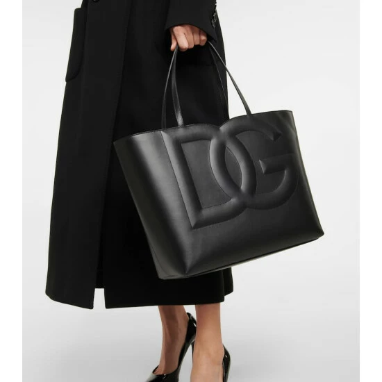 Made from black leather with tonal DG logo branding, this tote bag from Dolce&Gabbana hangs from double top handles and has a roomy interior.