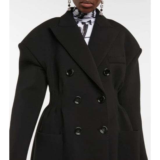 Embrace signature house codes in Dolce&Gabbana’s double-breasted coat with a futuristic finish. Made in Italy from technical jersey, it features an exaggerated silhouette, defined by its tightly cinched waist and dropped structured shoulders.