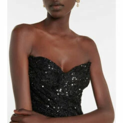 This sultry minidress from Dolce&Gabbana is perfect for your next party. It’s made from embellished lace and has a sweetheart neckline with a flattering cross-over silhouette.