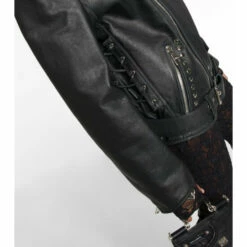 Dolce&Gabbana spins a classic leather jacket in a contemporary way. This piece features round silver-toned embellishments and a belt wrapped along the bottom.