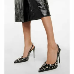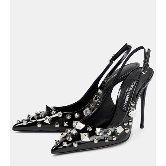 Equally elegant and edgy, these slingback pumps from Dolce&Gabbana add the perfect finishing touch to any evening ensemble. They’re made from polished black leather and feature studs and crystal embellishments.