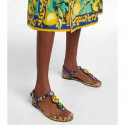 Vibrant and sophisticated, these sandals perfectly encapsulate the spirit of Dolce & Gabbana’s coveted new Lemon collection. Set on printed soles, they secure with crystal-embellished thong straps.