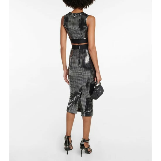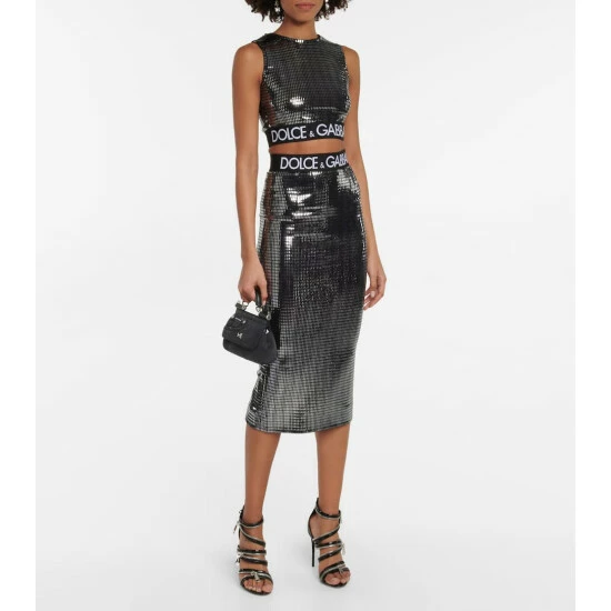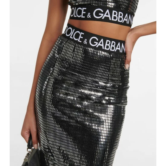 Embellished with shimmering mirrored beads, this midi skirt from Dolce&Gabbana sits high on the waist with a logo-printed elasticated waistband.