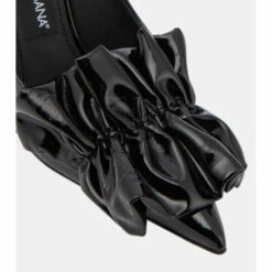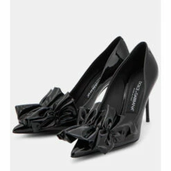 Dolce&Gabbana revamps the classic pump silhouette with this design, featuring an artfully ruched detail on the front. The style is made from glossy black patent leather and has a gold-tone logo on the heel.