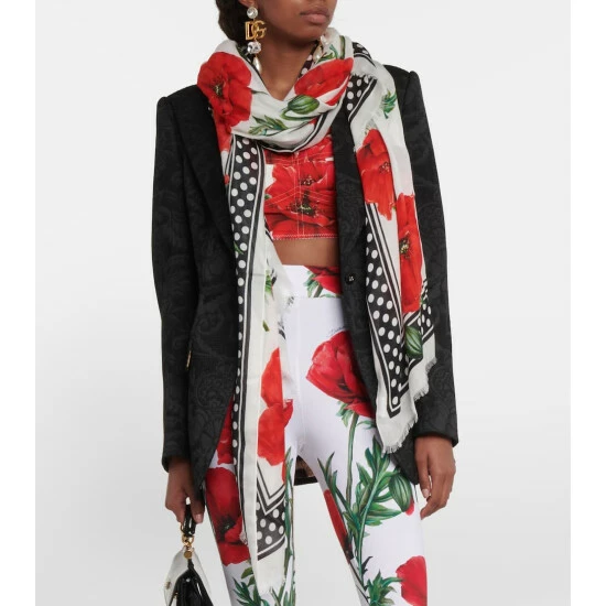 This lightweight scarf from Dolce&Gabbana is made from modal with a touch of cashmere for added softness. It’s printed all over with an exuberant poppy motif and finished with fringed edges.