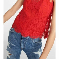 Designed for a regular fit, this sleeveless top from Dolce&Gabbana is expertly crafted from floral Chantilly lace in a bold red hue and features a crêpe de chine tank top for added coverage.