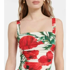 This figure-hugging minidress is a quintessentially Dolce&Gabbana design. Printed with the house’s vibrant poppy motif, it’s made from fluid silk-blend charmeuse with a straight neckline and ruching at the sides.