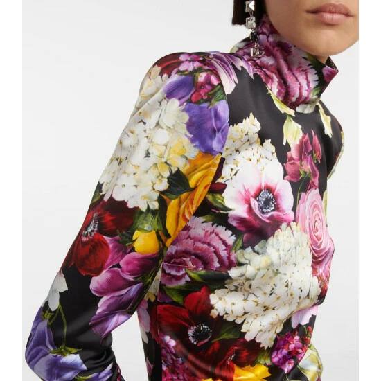 Bringing life to the floral print, this top from Dolce&Gabbana is made from high-shine fabric. A high neck and padded shoulders add structure to the slim-fit design.
