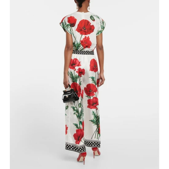 Brighten up your classic silhouettes like this pure silk pants from Dolce&Gabbana. The design is cut into a high-rise, wide-leg silhouette, and features an all-over brand-signature poppy print.