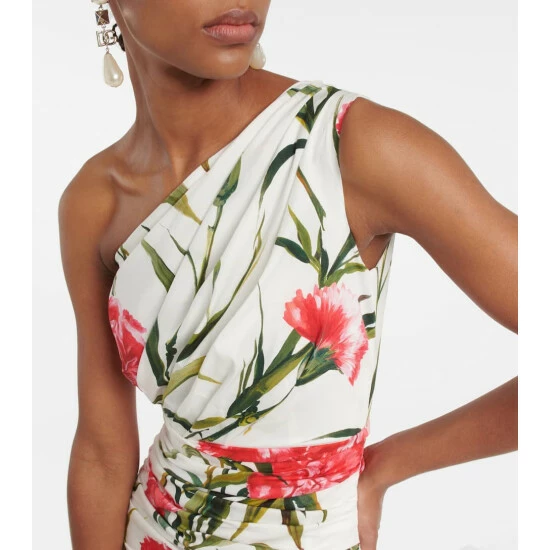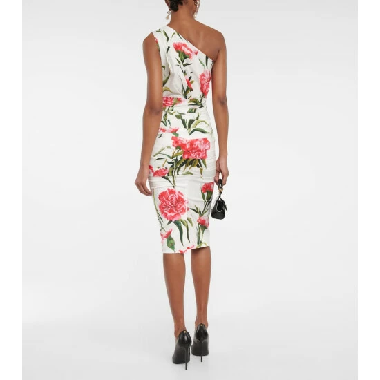 Embrace the refreshing colors of this floral-printed cotton-blend midi dress from Dolce&Gabbana. Made in Italy and partially lined with a silk-blend, this design has an asymmetrical one-shoulder silhouette.