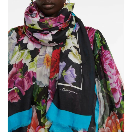 Bursting with Hydrangeas, roses, and anemones, this printed scarf from Dolce&Gabbana is a transeasonal essential. The lightweight design has a subtle script logo and a gently frayed edge.