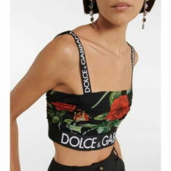 Made from a stretchy silk blend, this crop top from Dolce&Gabbana showcases the brand’s timeless rose print. The slim-fit design is accentuated with ruching at the seams and a logo-branded hem and shoulder straps.
