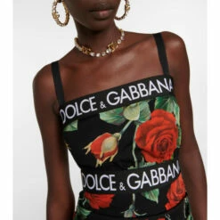 This strapless bustier minidress from Dolce&Gabbana is made from stretch-fused silk. It’s printed with photorealistic roses and cinched with unmissable logo-adorned tape.