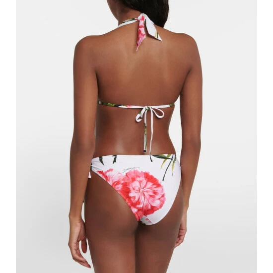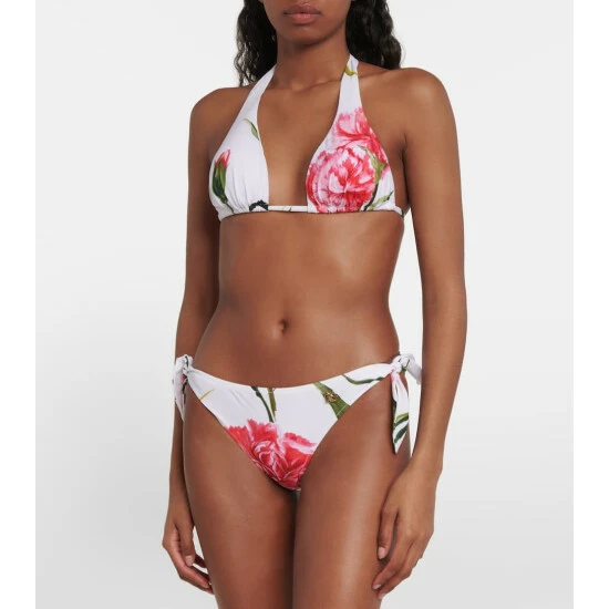 This bikini from Dolce&Gabbana is everything you need to hit the beach. Made from floral swim fabric, it comprises a triangle top with removable cups and low-rise bottoms accented with the label’s DG logo.