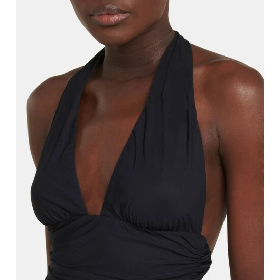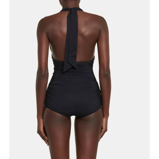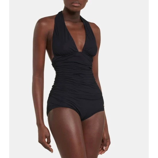 This swimsuit from Dolce & Gabbana will be the sleek base layer of myriad ensembles. Made from stretchy fabric, it’s a halterneck style with shirred detailing.