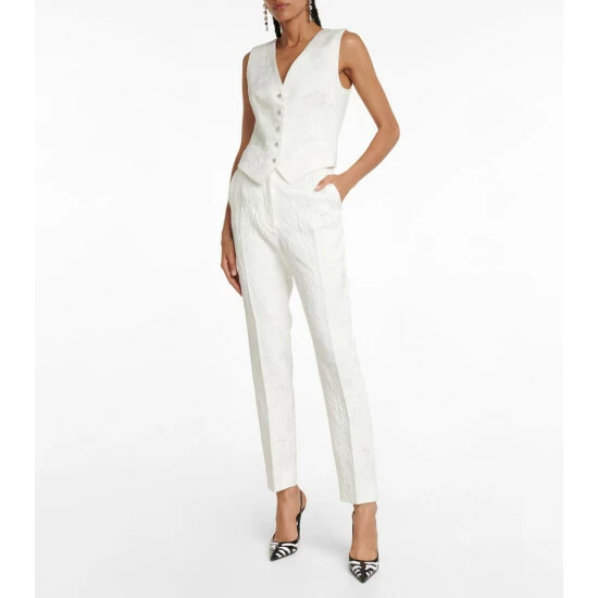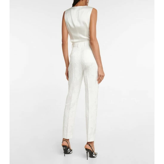 Sitting high on the waist with straight legs, these pants from Dolce & Gabbana feature tonal floral embroidery.