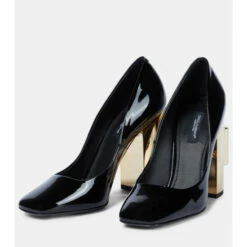 Adopt Dolce & Gabbana’s signature glamour with the Jackie pumps. They’re made with lustrous black patent leather uppers, but it’s the 105mm block heels – in a shiny golden finish with DG monogramming – that make them statement shoes.