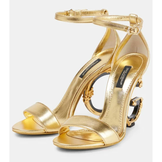 Dolce&Gabbana enriches the Keira sandals with lacquered baroque heels for double the decadence. Made from metallic leather, they feature embellished buckles.