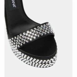 Elevate your footwear edit with these sparkly platform sandals from Dolce&Gabbana. Made from black satin, the high-heel style is adorned with rhinestones all over for a glamorous touch.