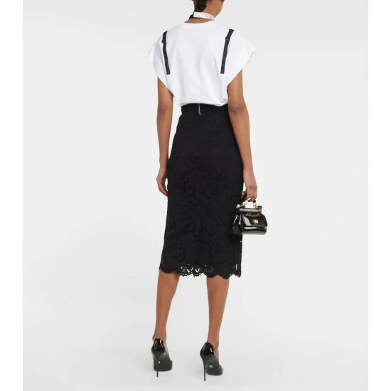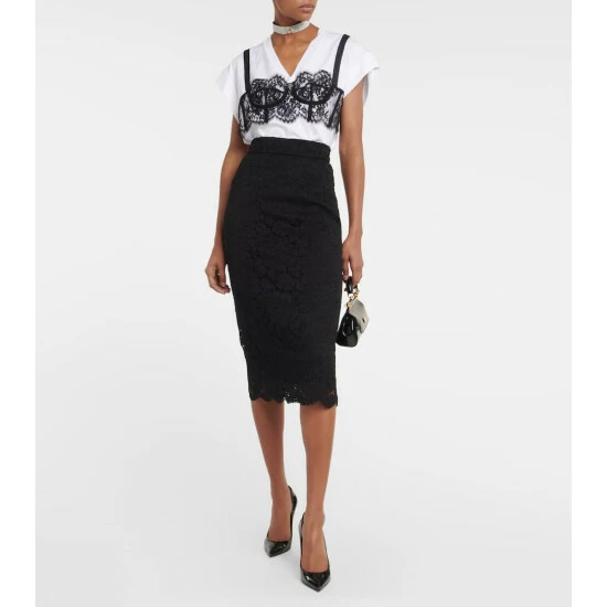 This Dolce&Gabbana midi skirt has a floral lace overlay and a silk blend lining. Cut into a pencil-style silhouette, the tonal design has a high rise.