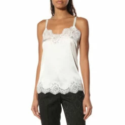 Dolce & Gabbana’s lingerie-inspired camisole has been made in Italy from lustrous silk-blend white satin. For a heightened romantic feel, it’s trimmed with tonal lace inserts around the neckline and hem. See yours as a sultry addition to classic all-black ensembles.
