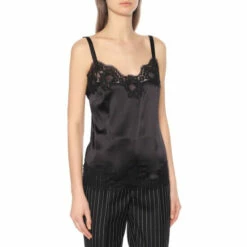 Dolce&Gabbana’s lingerie-inspired camisole has been made in Italy from lustrous silk-blend black satin. For a heightened romantic feel, it’s trimmed with tonal lace inserts around the neckline and hem. See yours as a sultry addition to classic all-black ensembles.