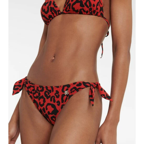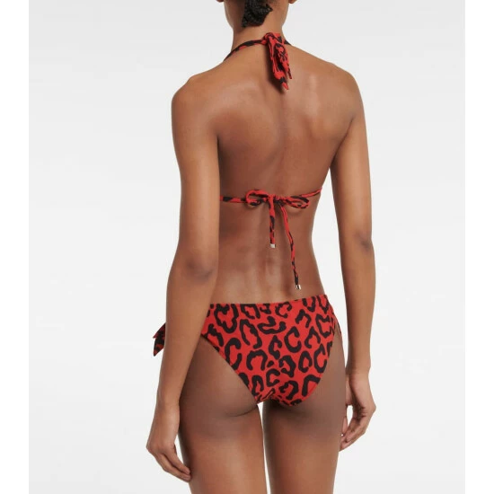 Dolce&Gabbana’s vivacious vision is spotlighted by this fierce bikini. Featuring a classic leopard print, this two-piece set has a halterneck triangle top with adjustable ties and moderate coverage bottoms with logo plaque detailing.
