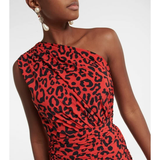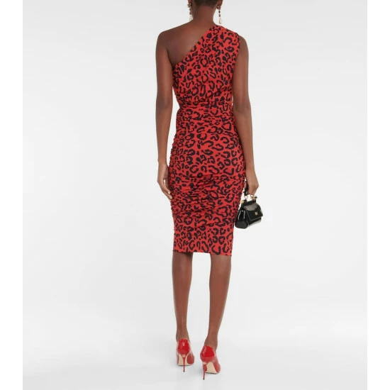 Reviving its leopard-effect print in an alluring red hue, Dolce&Gabbana enhances the graphic design with ruching. The one-shoulder dress is cut into a slim and supportive fit from a stretchy jersey fabric.