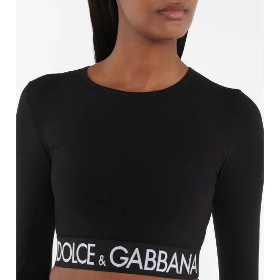 Dolce & Gabbana’s activewear edit is all about minimalist pieces – like this crop top – in which you can power through your workout in style. This design is cut from black stretch-cotton and accented with branding at the underband.