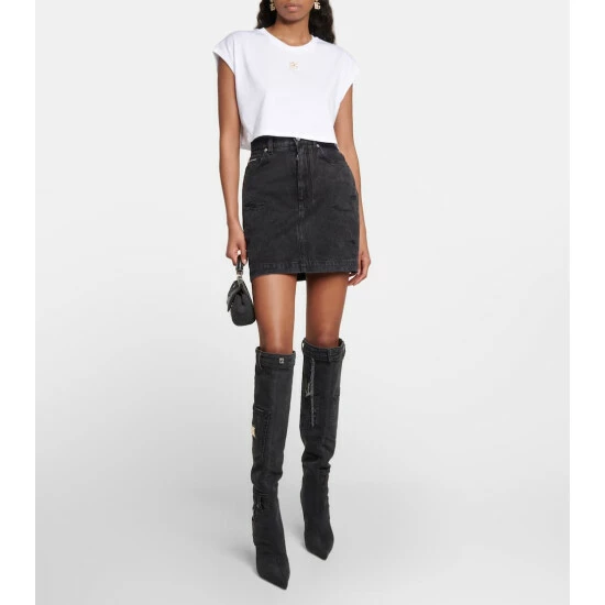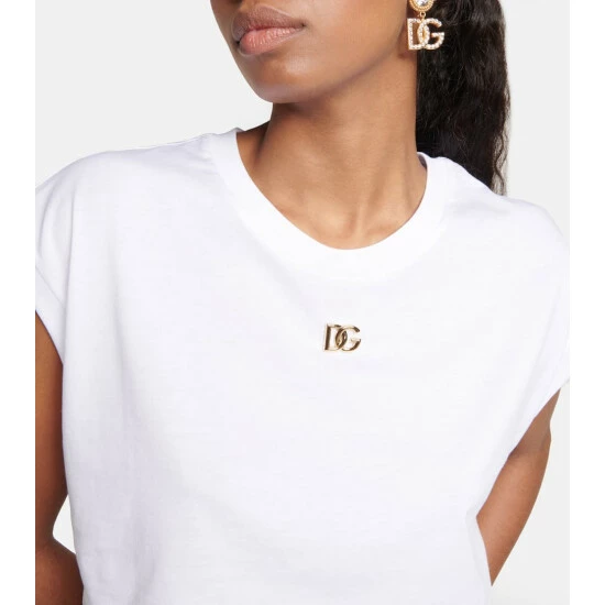 This crop top from Dolce&Gabbana is made in Italy from cotton jersey. It has a relaxed fit with a crewneck and is embellished with golden monogram hardware at the chest.